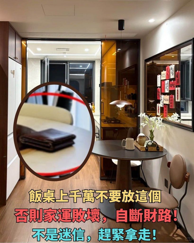 很多人下班回家,順手就把錢包、鑰匙往餐桌上一扔,覺得這只是生活小習慣。但命理師與家政專家要嚴肅提醒妳:餐桌是家中的「第二財庫」,隨便放錢包,小心把財運都壓垮了!