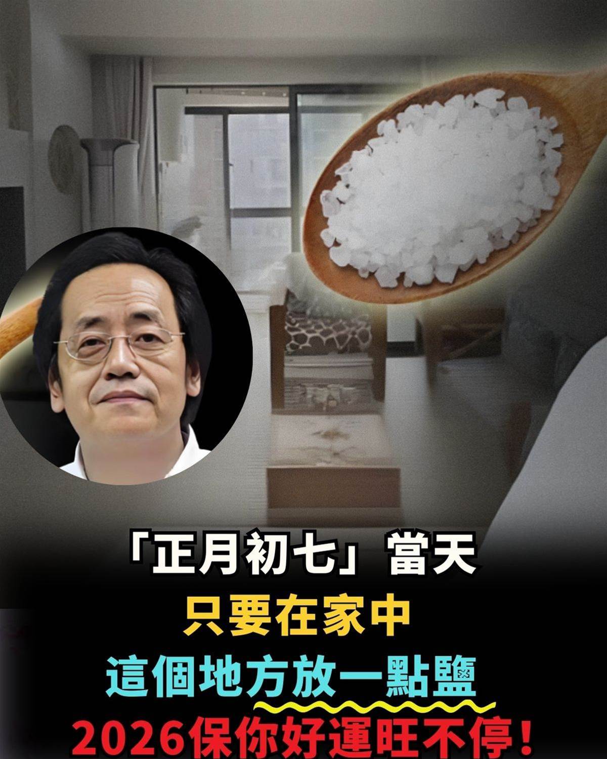 2026年2月23日大年初七「人日」,是全年運勢的「人為定調日」!民俗專家與風水師聯合透露一個簡單卻強大的開運秘法:只要在這一天,于家中「這個特定地方」放置一點鹽,就能啟動淨化與保護的能量場,為2026年全年帶來好運旺不停的庇佑!