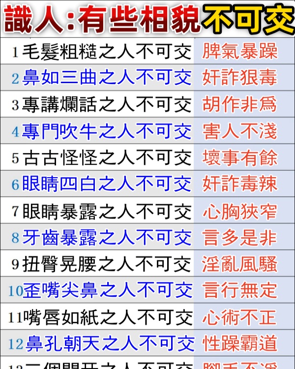 歪嘴尖鼻:這類人言行無定,難以捉摸。