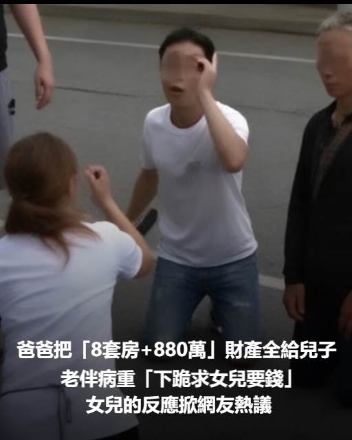 「逆子,逆子啊,你不孝啊!」,「就是死也和我無關,看病找你兒子去!」這絕情的對話出自大陸四川成都的一對父女之間。都說養兒防老,這位70多歲的父親的兒女雙全,但在老伴病重的時候,不但女兒沒有跟著忙前忙後,而且大爺在找女兒要醫藥費的時候,都下跪了還是被女兒無情拒絕。這究竟是因為什麼呢?老人和看似不孝的女兒之間又發生過什麼呢?獨寵兒子,重兒輕女的父親據了解,大爺姓付,今年已經有72歲高齡,住在成都,家裡的兩個女兒一個兒子早已成家立業,退休後的付大爺和老伴獨自生活,老房子拆遷還得到了8套房子和200萬(約880萬台幣)拆遷款,按理說生活應當十分圓滿。但重男輕女的付大爺想把老房子拆遷的時候得到的所有財產都留給兒子,指望兒子能給自己和老伴養老送終。