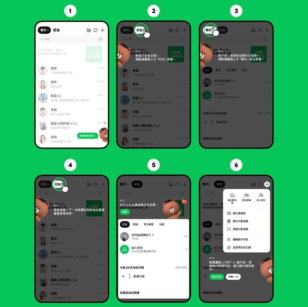 新手引導: 用戶開啟時將由人氣角色「熊大」進行互動式說明,引導使用者適應新操作。