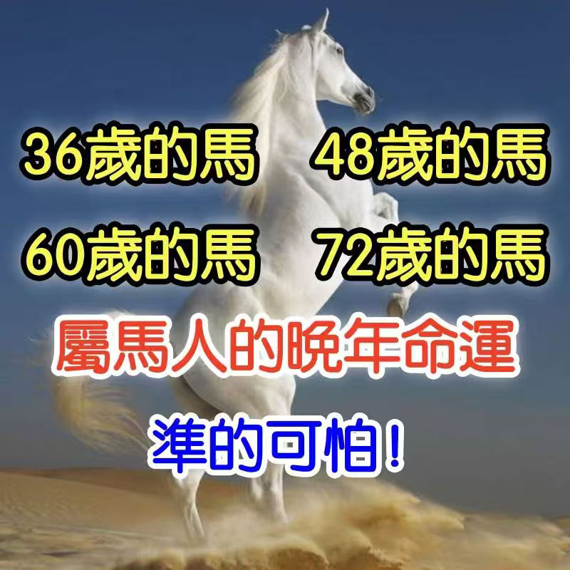 尤其是36歲的馬、48歲的馬、60歲的馬、72歲的馬,這幾個年齡點,更像是人生的重要轉折。老一輩常說:「馬到晚年,福氣自來。」到底準不準?看完你就懂了!